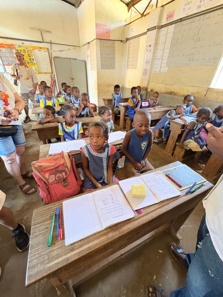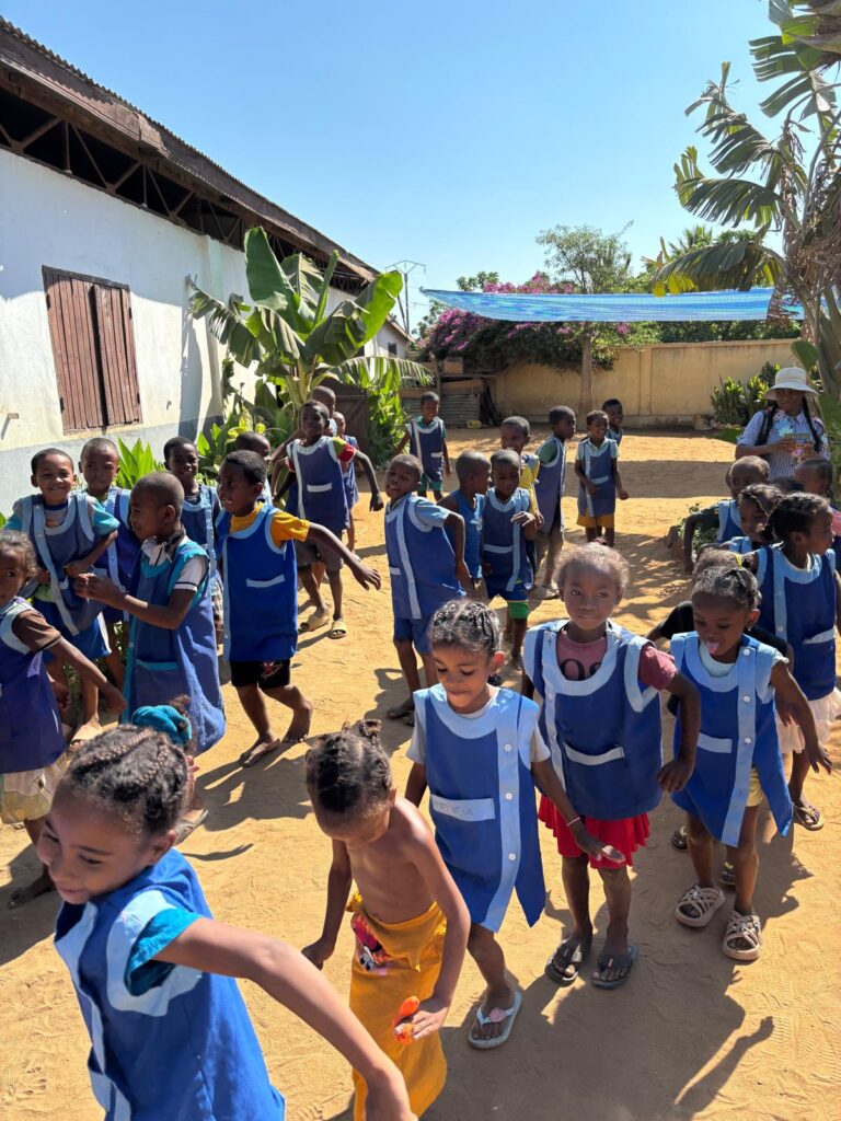 Levée tôt ce matin, après une nuit enfin réparatrice, notre équipe a pris la route de l’école de Miary. Dans le minibus, chacun a retrouvé sa place presque naturellement, comme si les années précédentes avaient installé un rituel, discrètement.