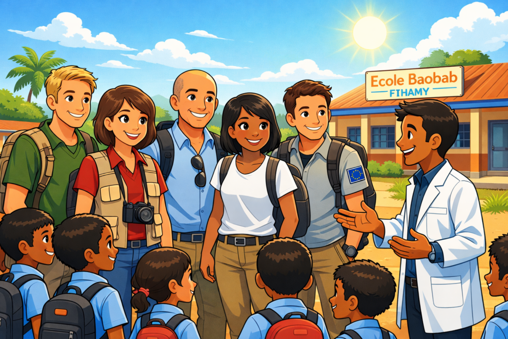 Comme chaque année, une délégation de représentants de l’association se rend sur place à Miary cette année ; pourtant cette année, l’épidémie de variole du singe (Mpox) et une insécurité accrue par les troubles qu’a connus le pays à l’automne dernier nous ont fait hésiter. Finalement 6 membres ont choisi de se rendre sur place afin de faire vivre nos projets et de contrôler les réalisations.